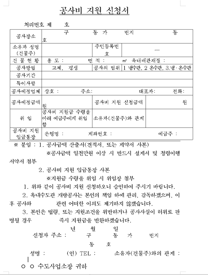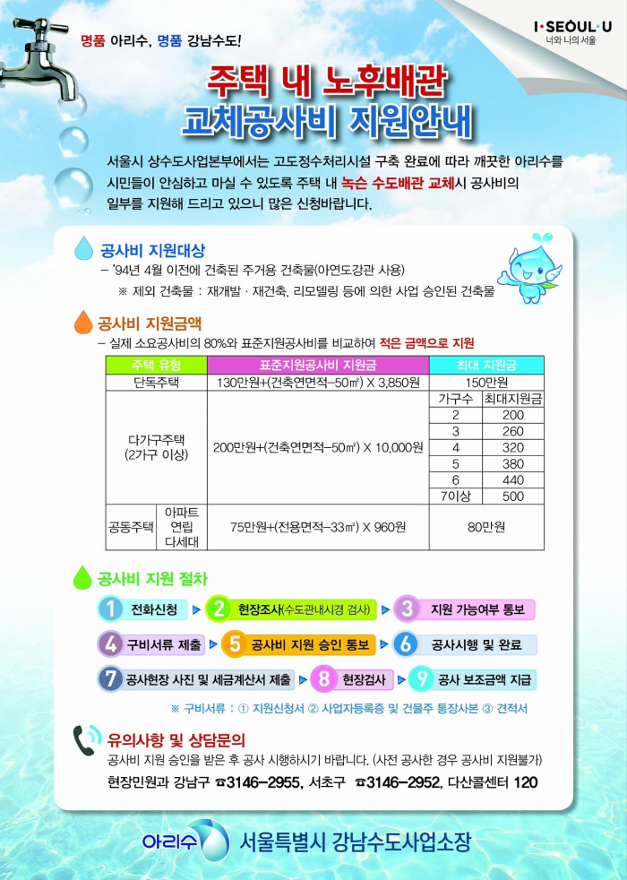 녹슨 수도배관 교체비용을 일부 지원하고 있습니다.
