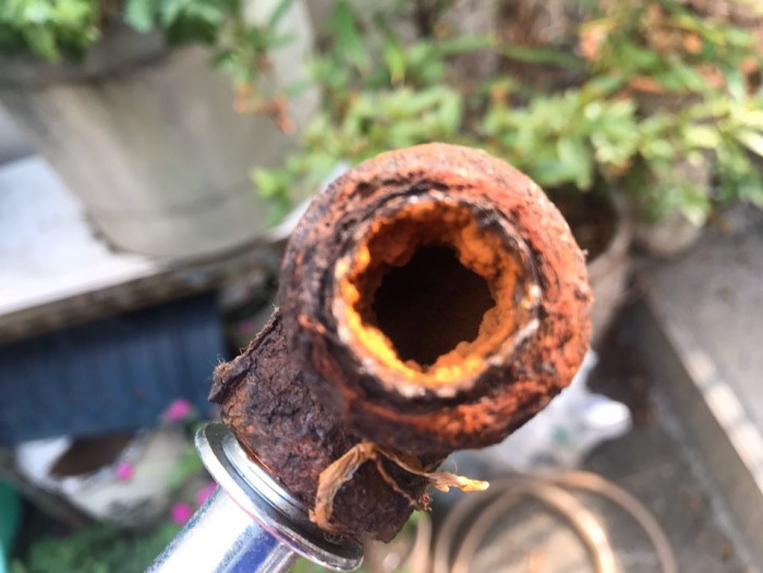 오래된 아연도강관 배관은 내부에서 서서히 부식되면서