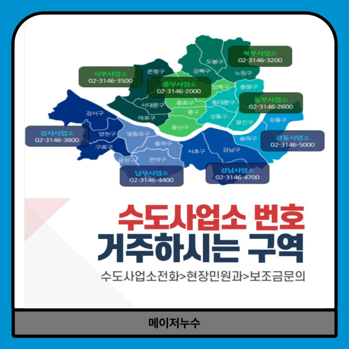 서울시 기준으로는 각 지역 수도사업소에서 담당 구역별로 접수를 받고 있으며,